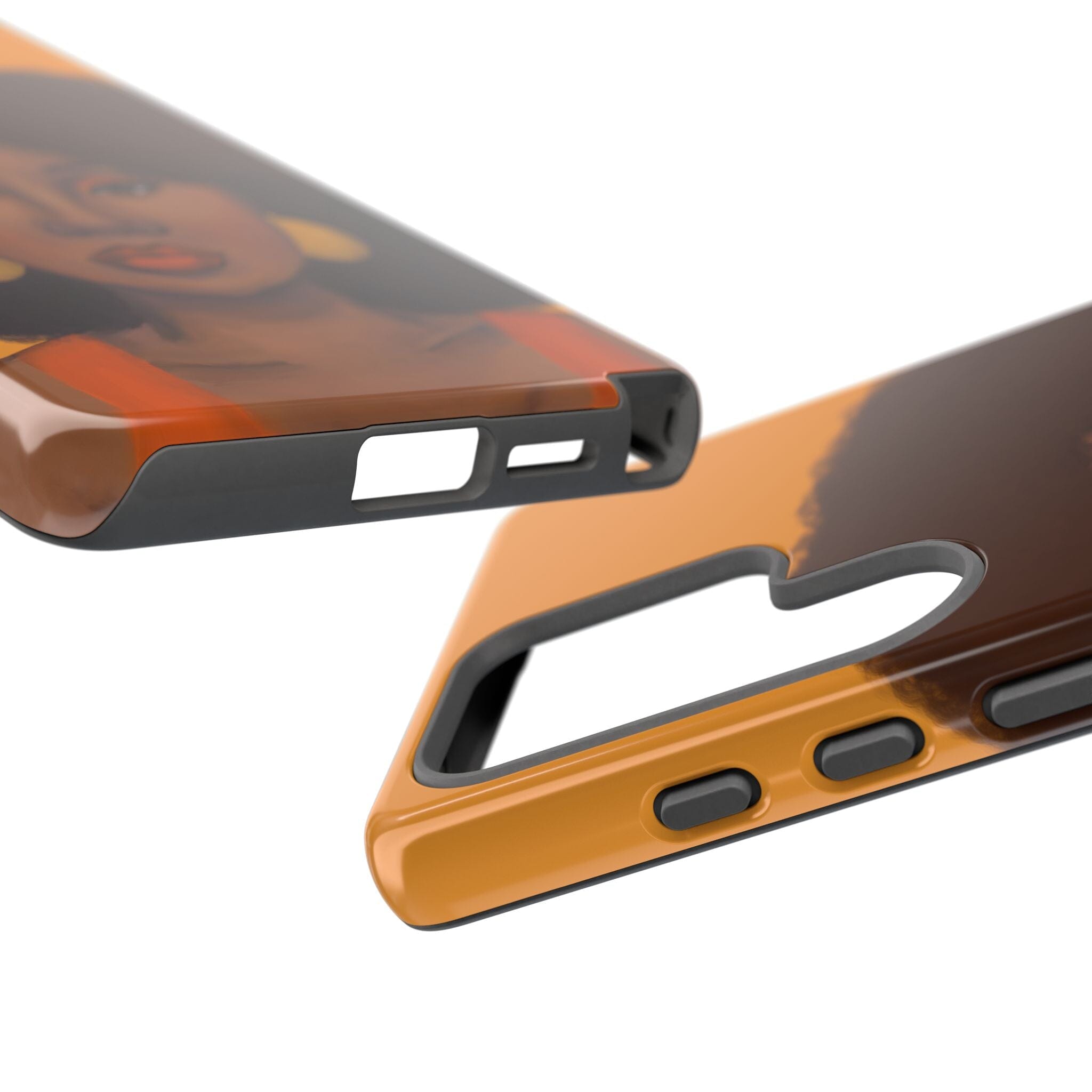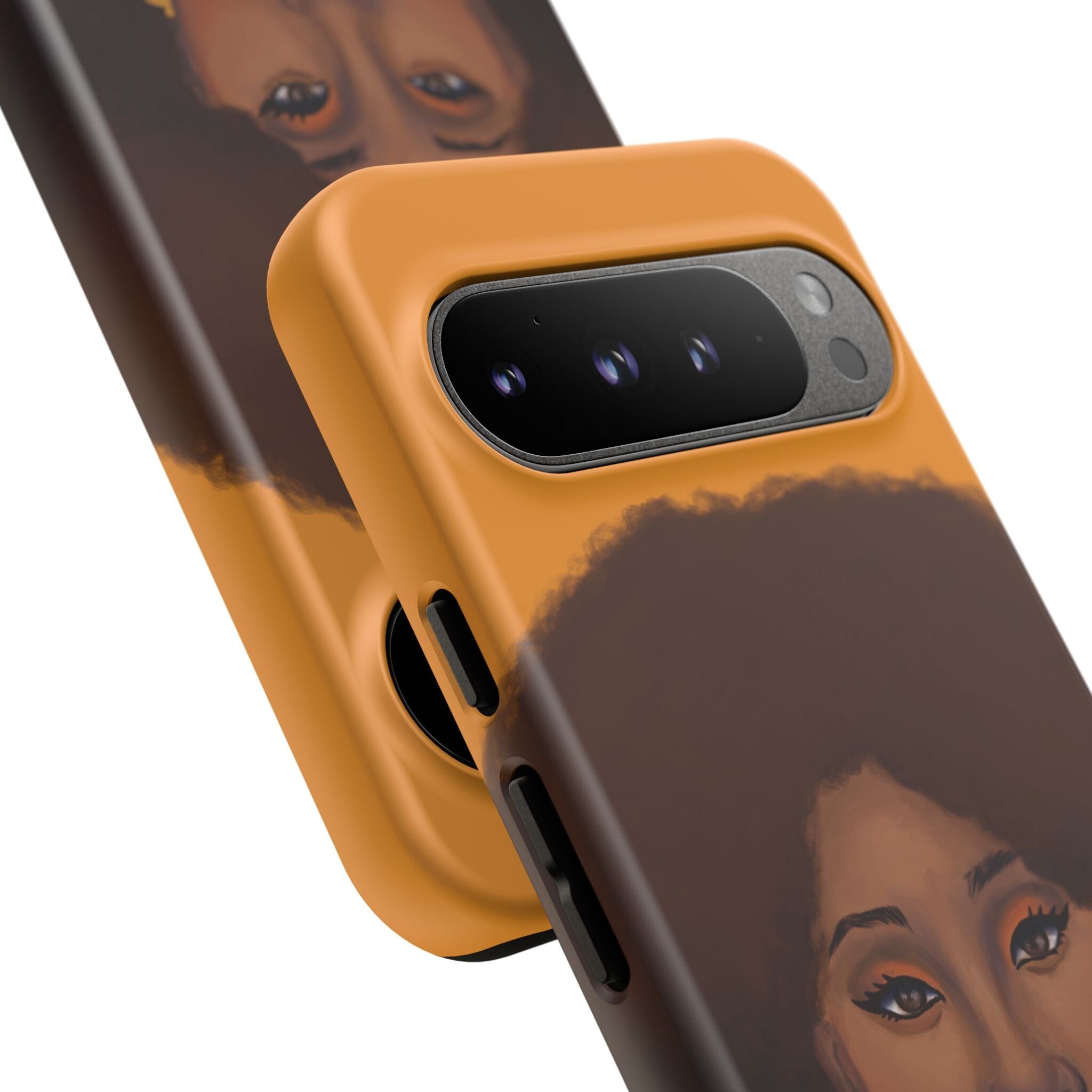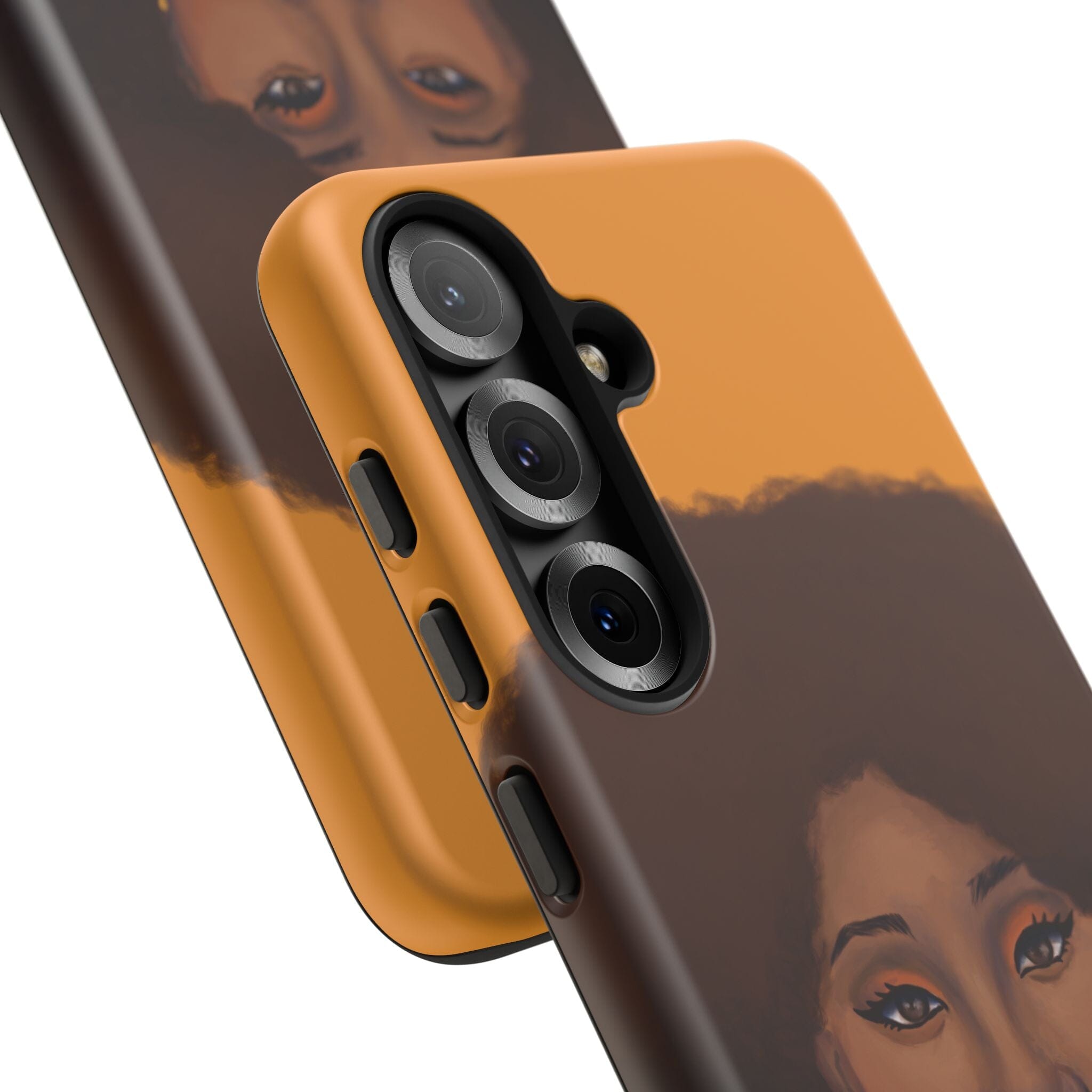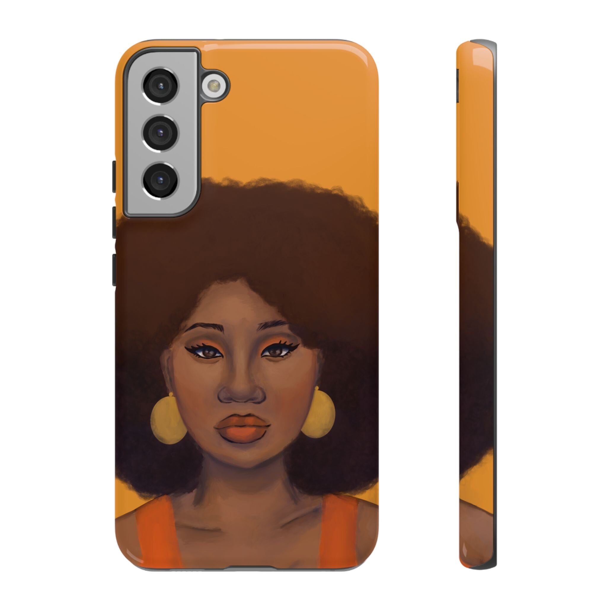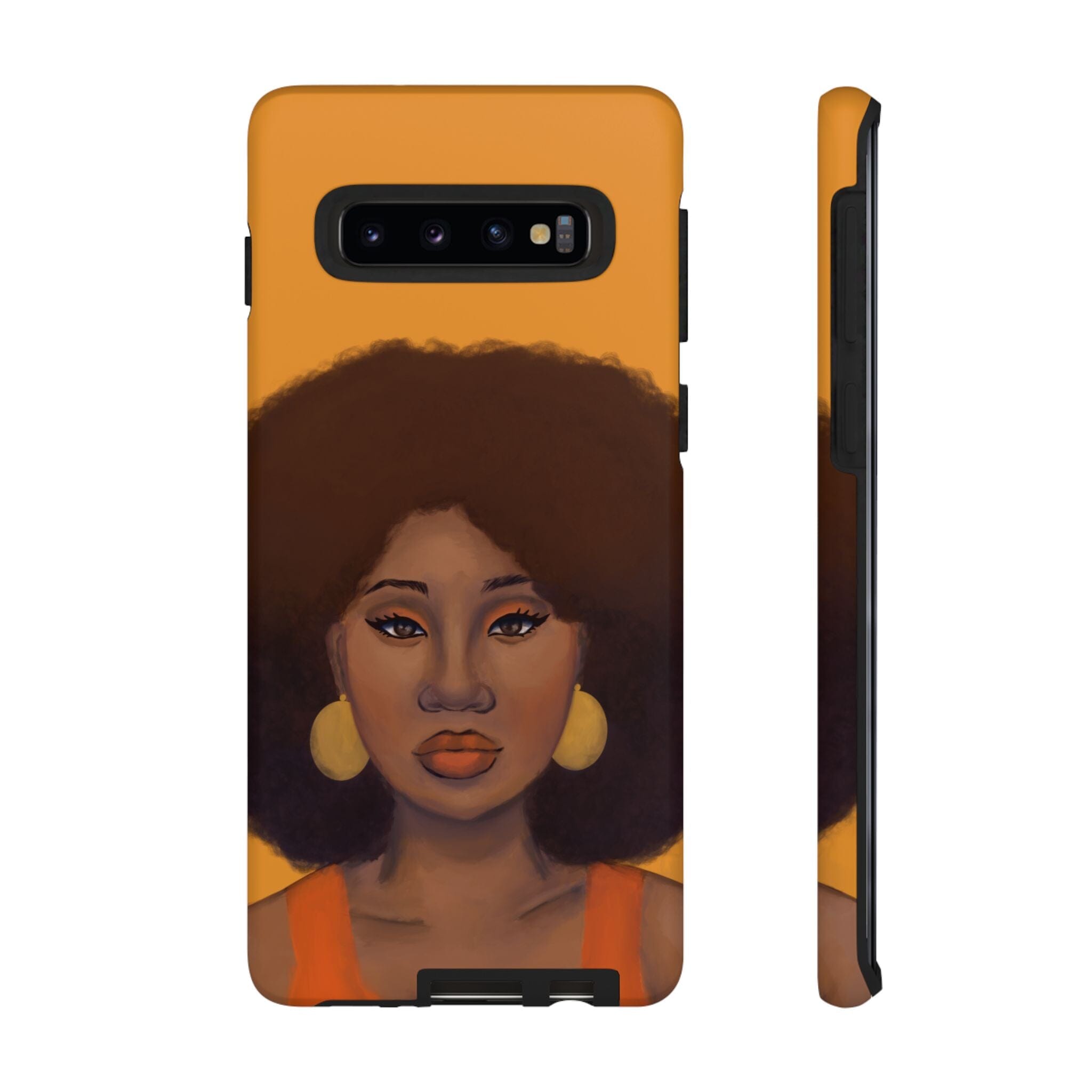 A premium tough phone case featuring a colorful illustration of a Black woman with an afro. These phone cases are made with impact-resistant polycarbonate outer shell and feature an inner TPU liner for extra protection against accidental drops.