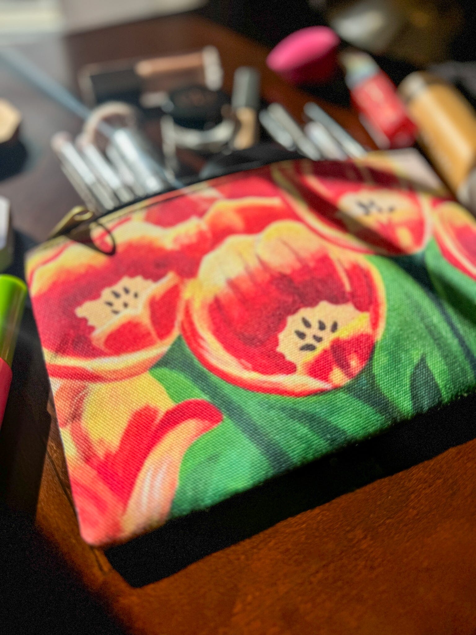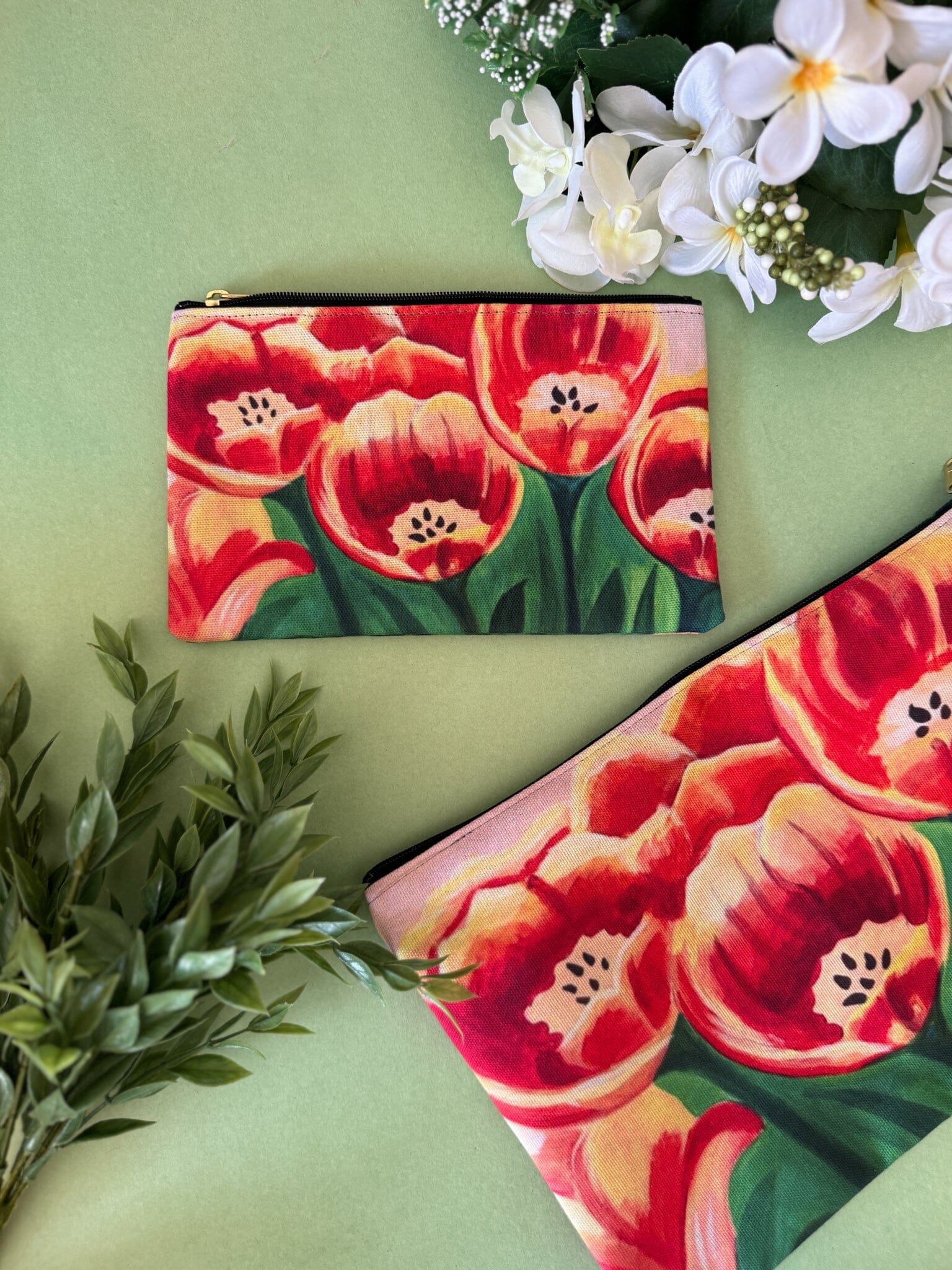 This warm tulips floral pouch is perfect for organizing makeup, toiletries, pencils or small accessories. Ideal for people who love vibrant floral designs and enjoy staying organized. Perfect for gifting on Mother's Day, birthdays, or as a thoughtful gesture.