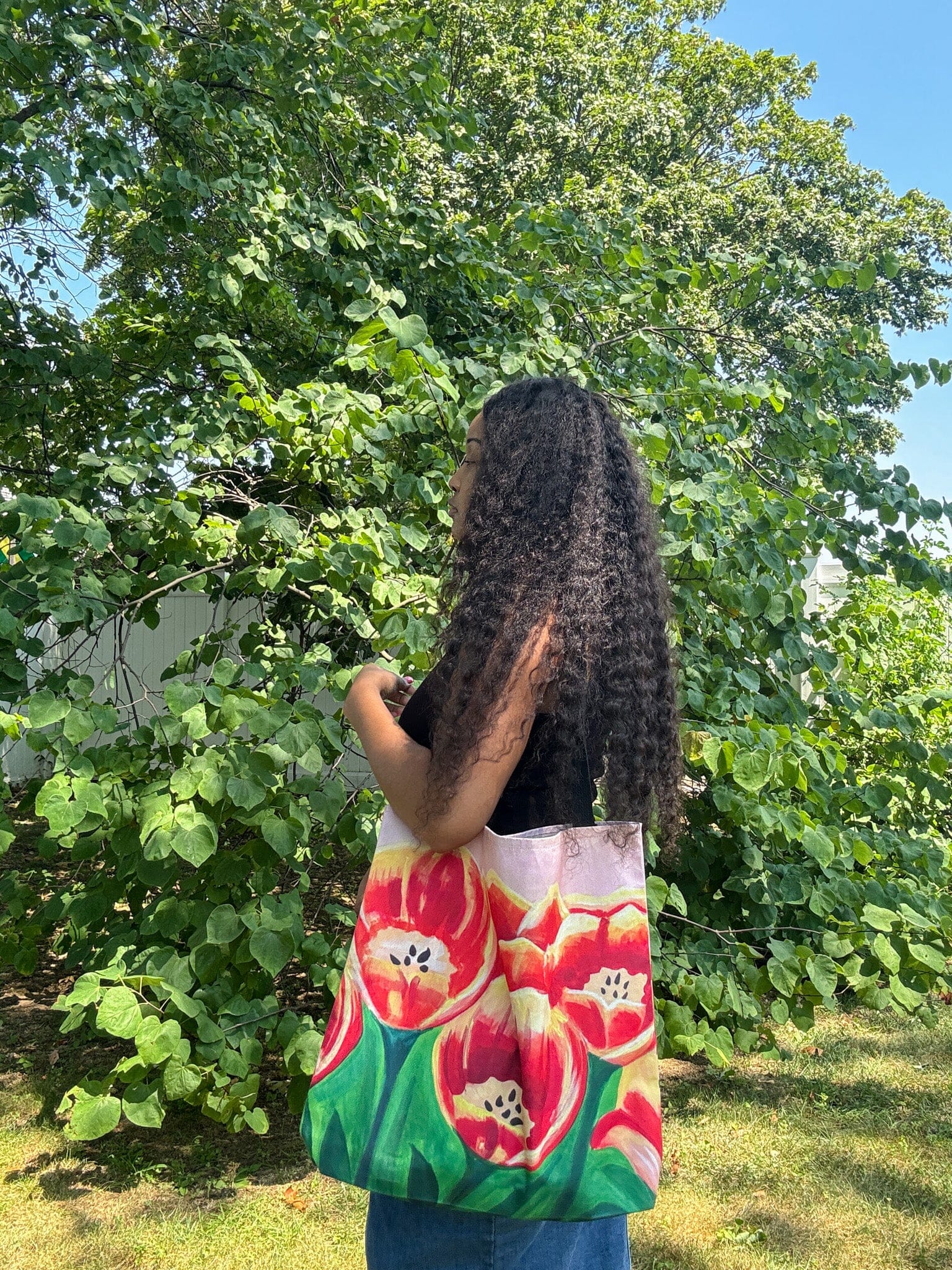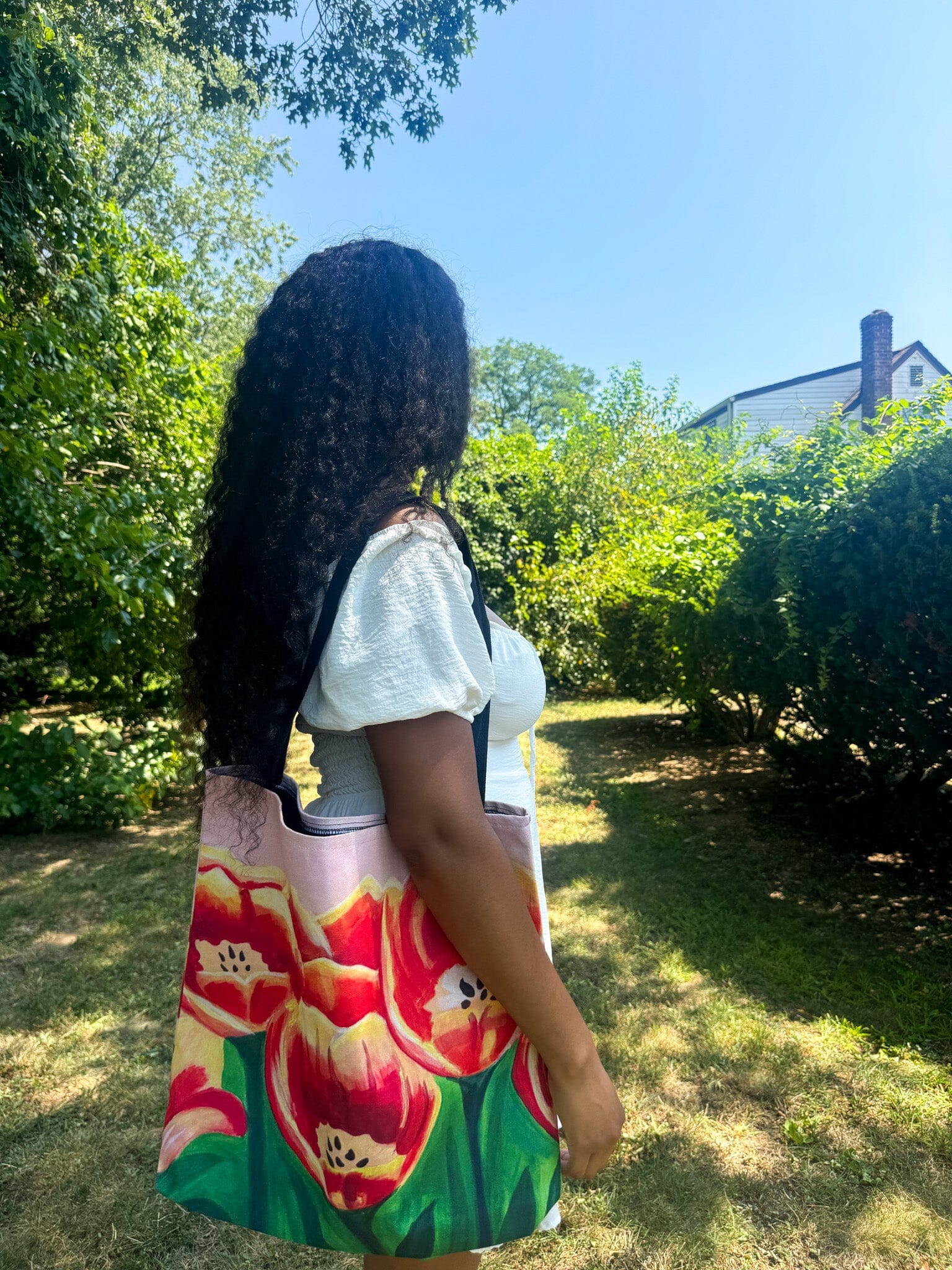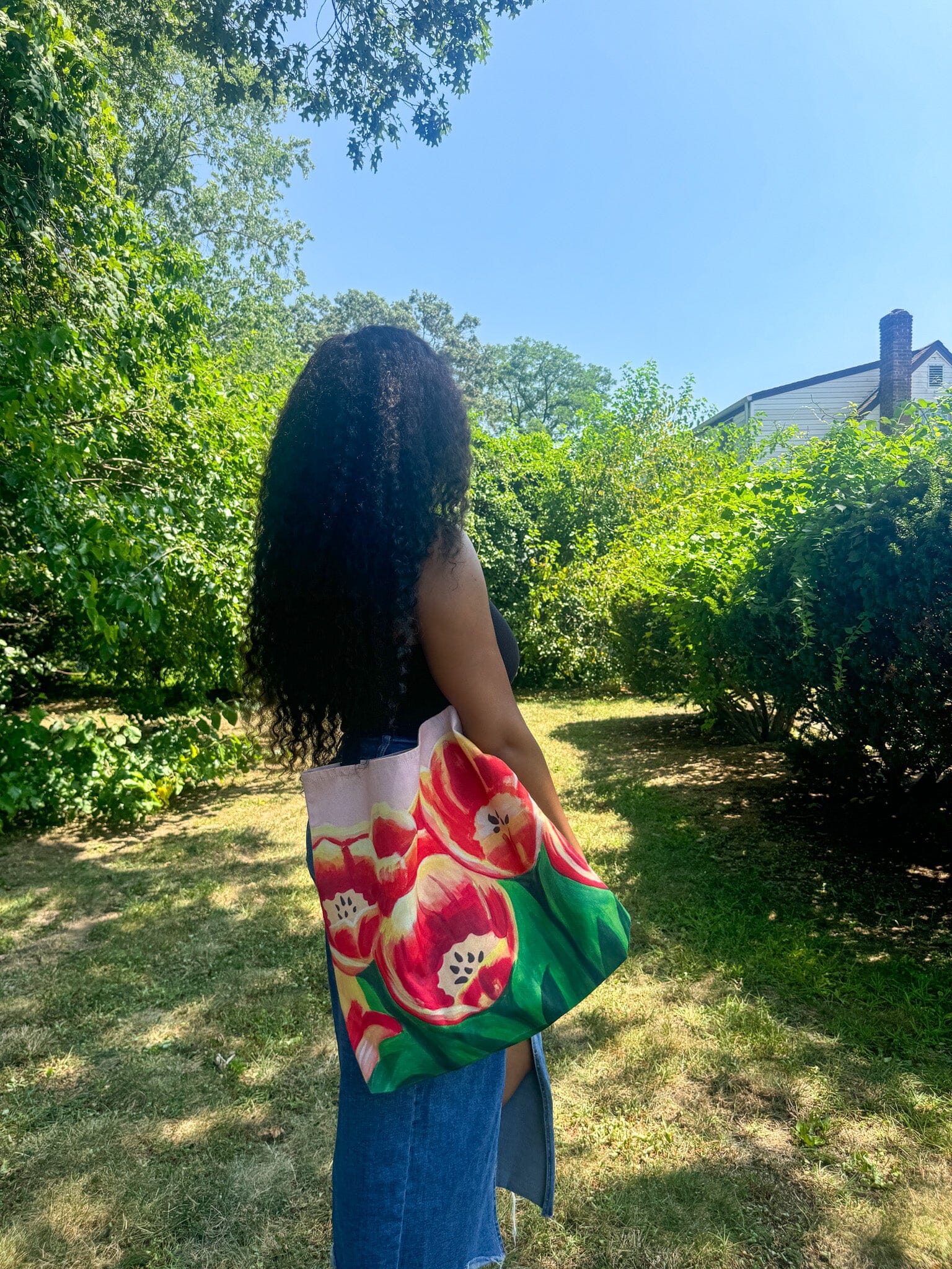 Bring a burst of cheer to your day with the Warm Tulips Tote Bag! This lively floral tote is perfect for carrying all your goodies while adding a fun, fresh pop of color to your look. Light, roomy, and full of personality, it’s your new favorite companion for shopping sprees, beach days, or spontaneous adventures.